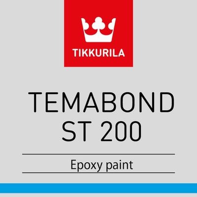 Temabond ST 200 od výrobcu Tikkurila sa obzvlášť používa ako základ pre ťažko umývateľné oceľové povrchy v spracovateľskom a chemickom priemysle a pri ponorení vo vode. Použitie: Môže sa použiť aj ako jednonáterový systém. Doporučuje sa použiť pre opravy alebo údržbu poškodených častí náteru pri preprave alebo inštalácii, náterov mostov, nádrží a rôznych druhov oceľových konštrukcií a zariadení v drevospracujúcom a chemickom priemysle, ako napr. stroje na výrobu papiera, dopravníky, potrubné mosty, atď. Vzhľadom na hliníkovú pigmentáciu, náter vytvára nepriepustnú vrstvu s dobrou odolnosťou voči chemikáliám a oteru. Veľmi dobrá priľnavosť k otryskanej alebo ručne očistenej oceli. Nízky obsah rozpúšťadiel, nižšie emisie do ovzdušia ako bežné epoxidové farby.